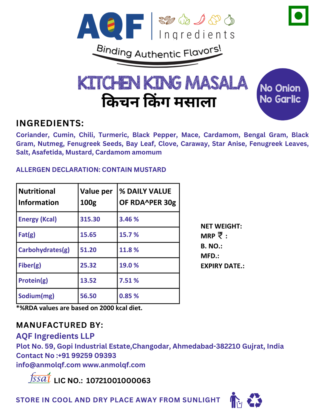 Anmol Kitchen King Masala is 100% ETO-free.