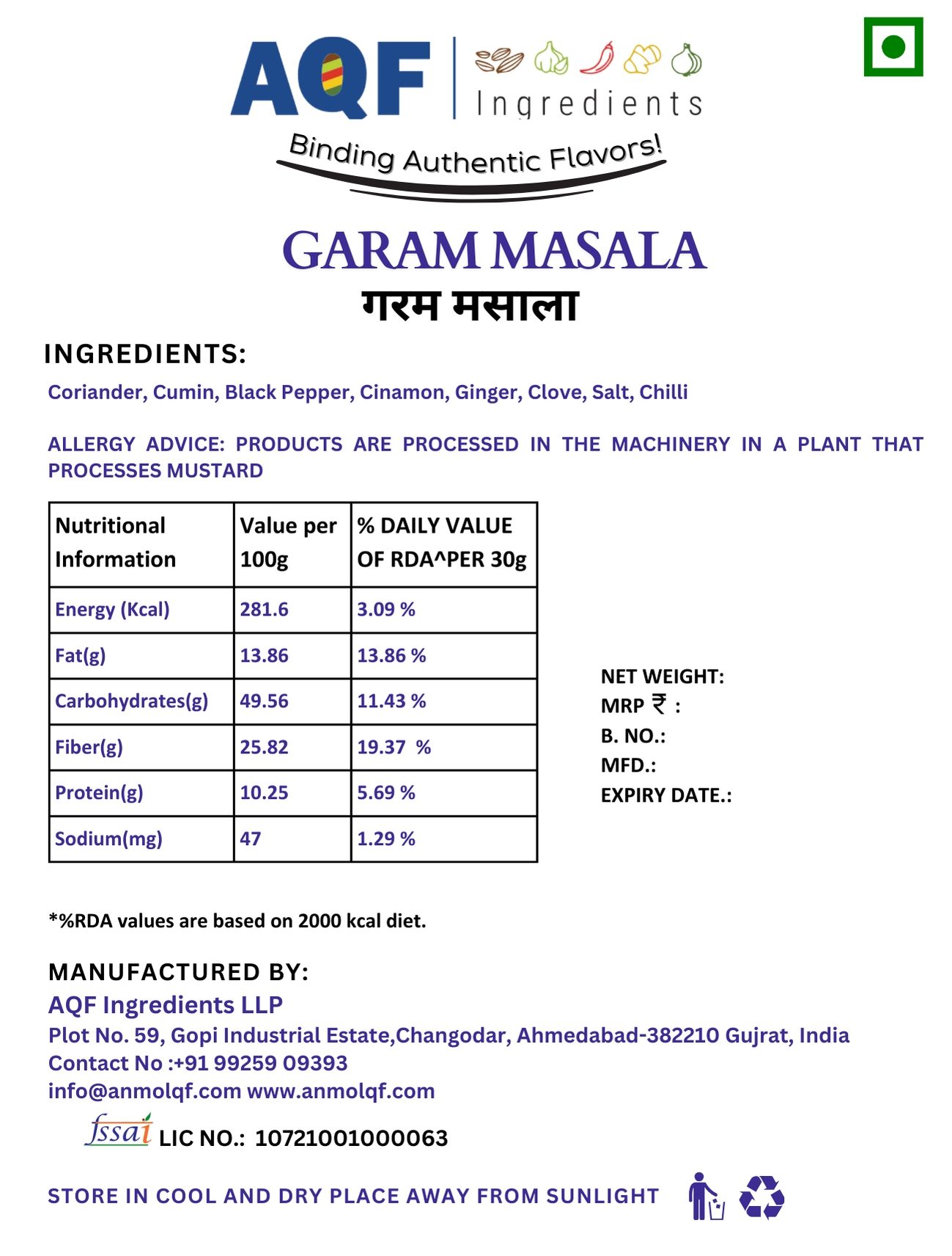 Every batch of our Garam Masala is meticulously processed and ground to preserve the original flavor and aroma of our product.